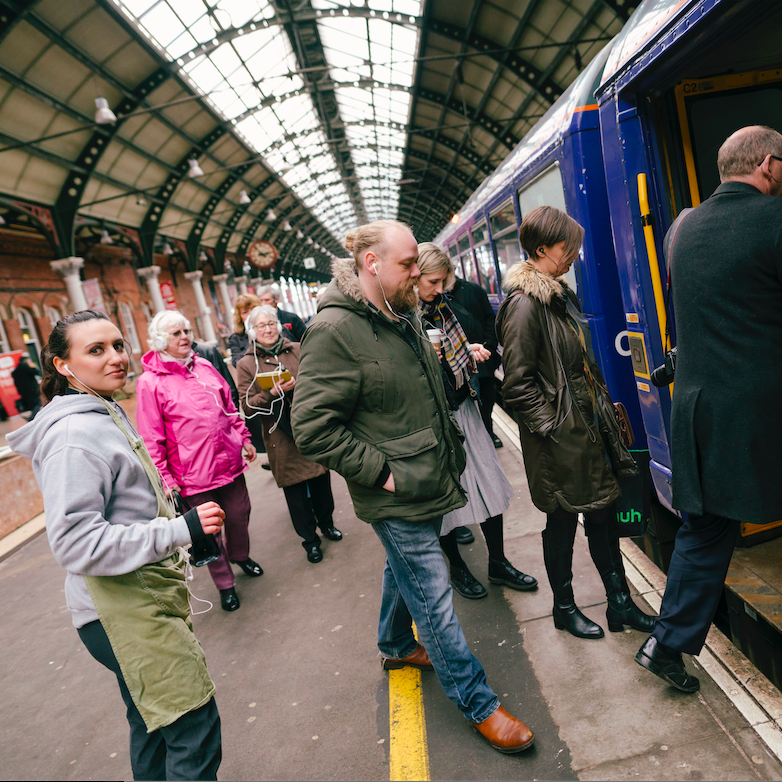 Our Line was created by Hannah Bruce & Co, commissioned by Luxi and presented as a Jabberwocky Market pop-up theatre event in partnership with Northern, the Bishop Line Community Rail Partnership & University of York.